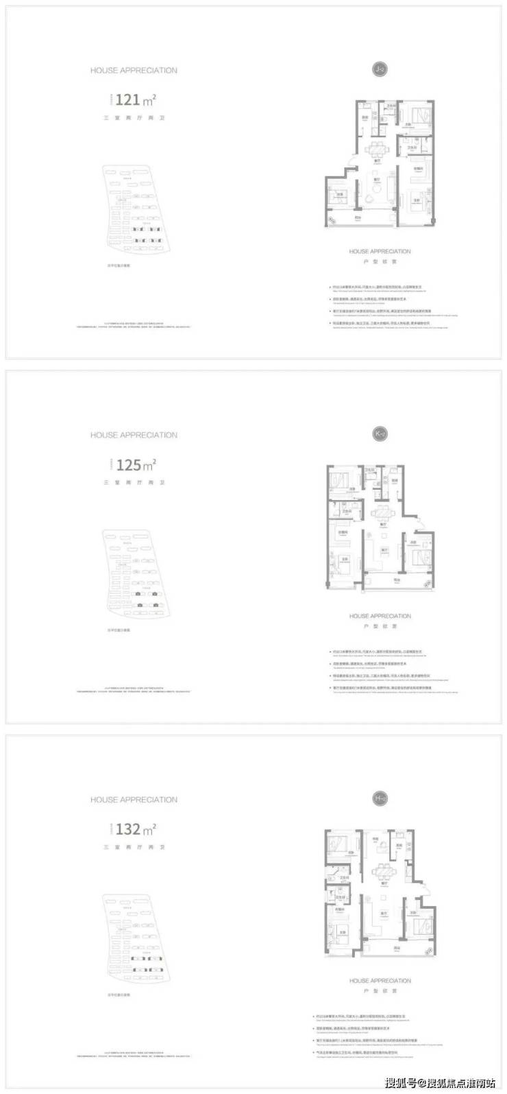 洋房有 118㎡、121㎡、132㎡ 三种户型,均为两卧朝南,双联阳台竖厅,和当下流行的大面宽、短进深的横厅相比,房屋中间的餐厅采光会受到一定的影响。