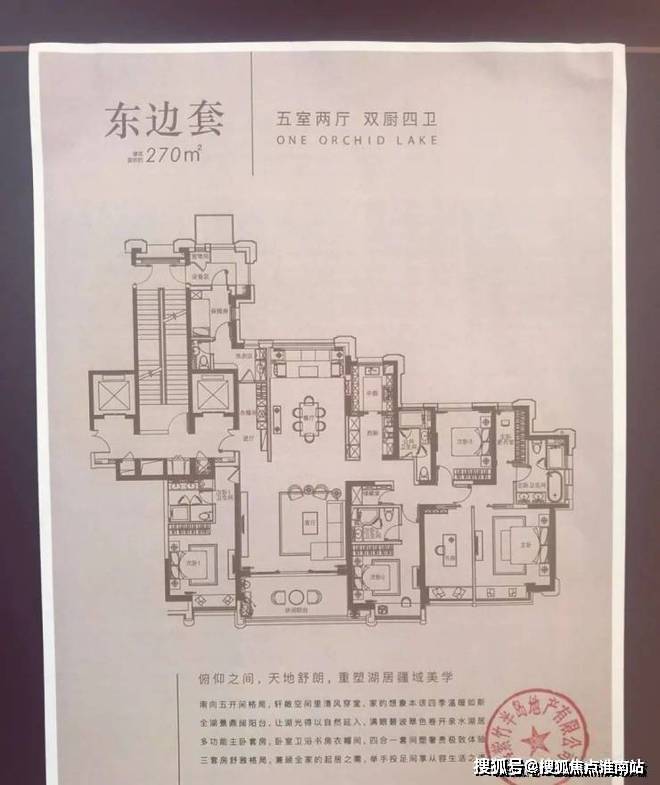 湖畔大平层共6栋,总套数约270套,均为精装交付,建面约为230㎡和270㎡。