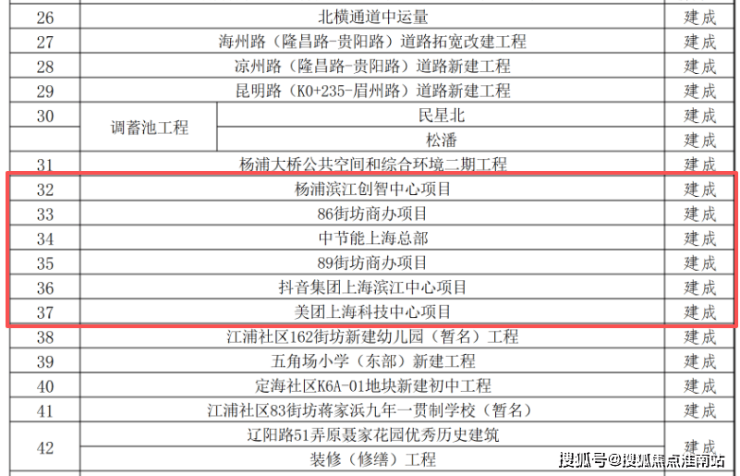 这份来自杨浦区官方公示的项目清单,清晰标注了从“新开工”“在建”到“建成”的全周期进度。其中, 抖音、美团、滨江创智中心的全面建成,将杨浦滨江的发展确定性,从蓝图实实在在落地为实景。