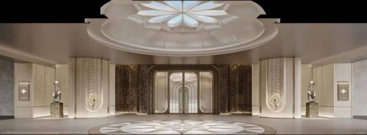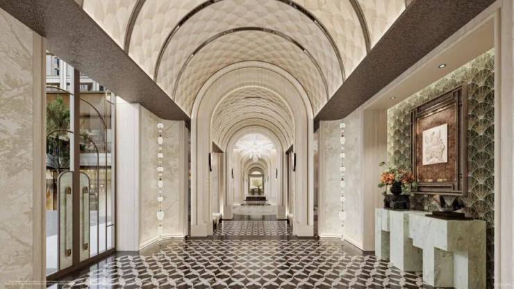 悦己显己的本真,复刻海派优雅,以高门大院礼序,约280米超尺度界面,臻选全球石材-贝克米白石材,于材质的碰撞与共生间,铺陈光影的诗意哲思,重塑当代门庭气度。