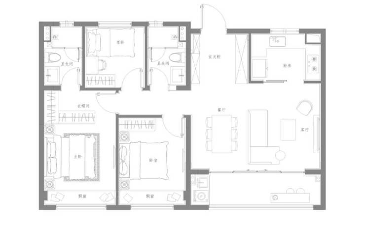 爱达城约106㎡三房两卫,布局上罕见地做到了四开间朝南,南向总面宽约11.7米!
