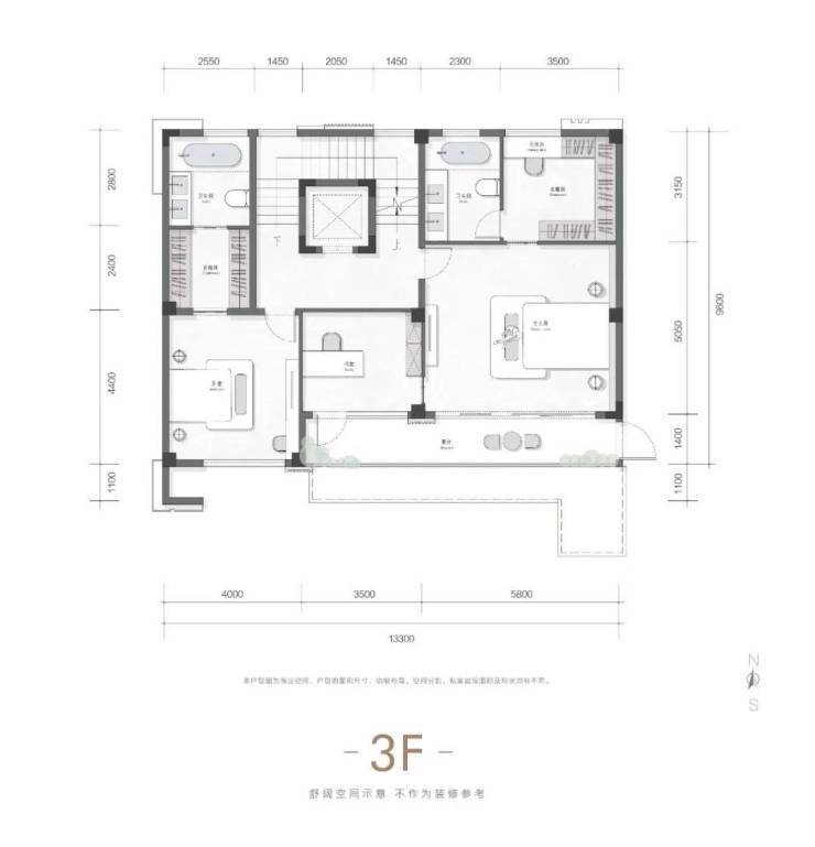 户户南入户,无地下室,一楼设置2个停车位,总高地上4层,一楼层高4米,2-4层层高3.5米,4楼顶为露天阳台。单层面积约142。