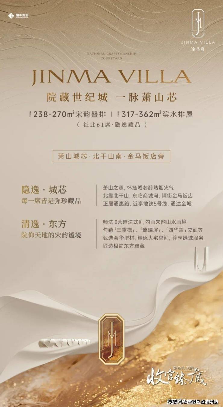 杭州望金马府位于萧山区通惠中路与站前支路交汇处(金马饭店对面),在售叠排238-270㎡、排屋317-362㎡,精装均价35400元/㎡(叠排),排屋约5万+/㎡。总高4-6层低密墅区,紧邻地铁5号线及彩虹快速路,配套万象汇商圈及绿城物业;