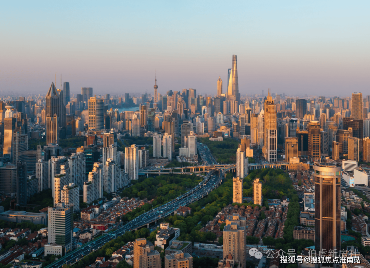 东瞰:延中绿地如翡翠铺展,新天地石库门群落与陆家嘴“三件套”同框;