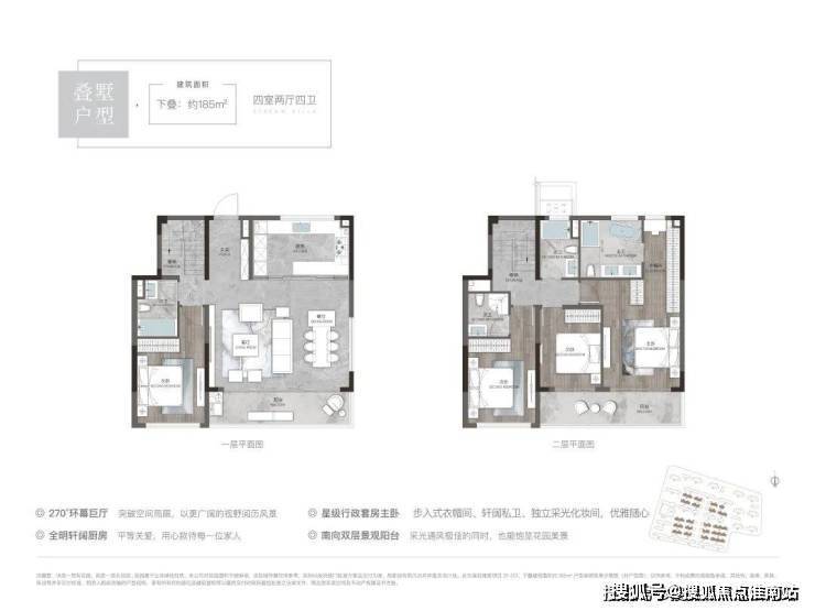 下叠185平户型:四室两厅四卫,总价380万-400万