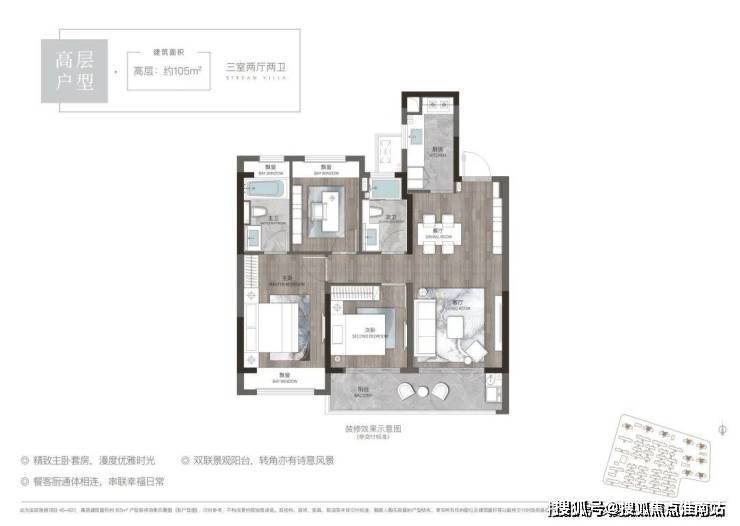 交付标准:高层精装(中央空调+新风)、洋房精装三大件、叠墅毛坯