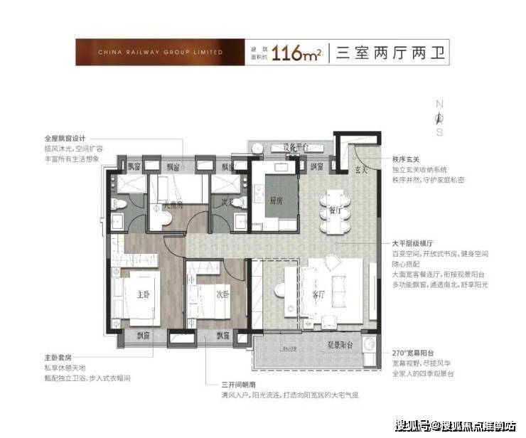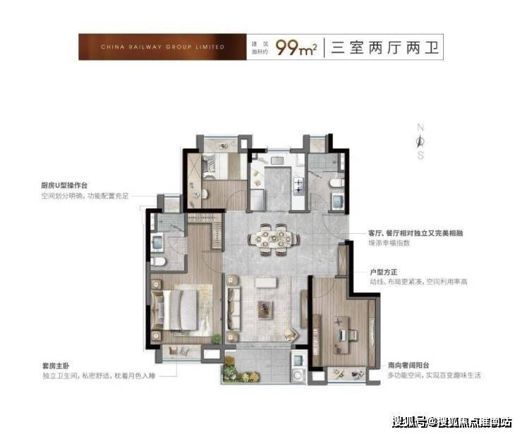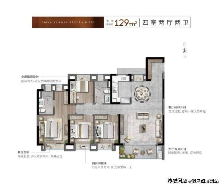 主力户型:有建面约89㎡、96㎡、99㎡的三房两厅两卫,以及建面约116㎡、129㎡的四房两厅两卫等多种户型。