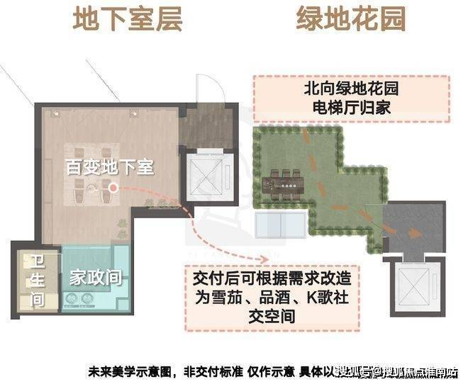 地下室百变空间,交付后可根据自身需求改造棋牌、工作室、品酒、健身空间……生活场景自由定义。