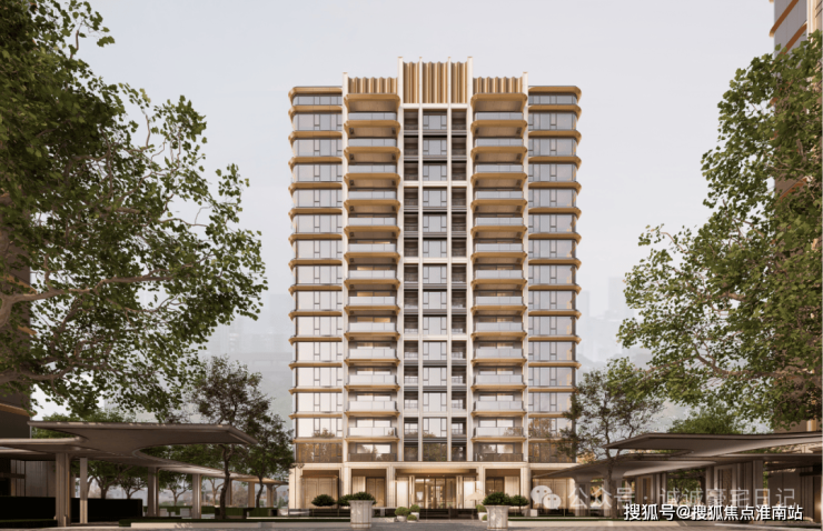 外立面设计,颜值拉满!建筑以暖色为基调,香槟金为点缀,全幅玻璃幕墙搭配澄澈镜幕弧形立面,品质感与昭示性极强!