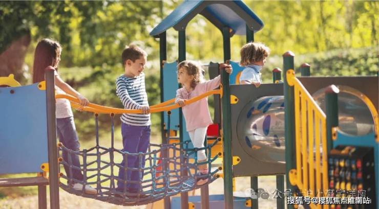 涵盖多年龄段儿童活动空间,在高差变化的场地空间能让孩子们在上面玩耍、攀爬、滑行、躲藏等,同时也设置家长看护区,家长在陪护的同时也可以做一些小型的活动。