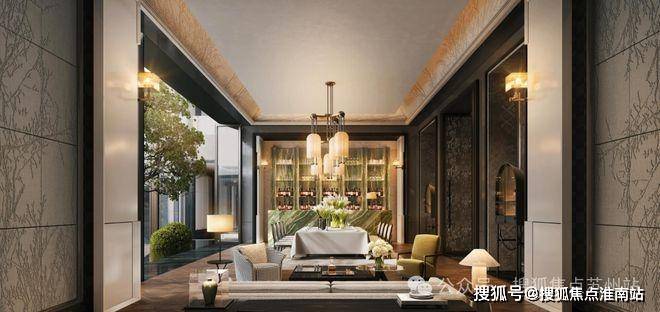 项目奢阔地标门厅,打造总长约88米、苏州首座大尺度流光造型宝顶及铂金长屏地标门厅。