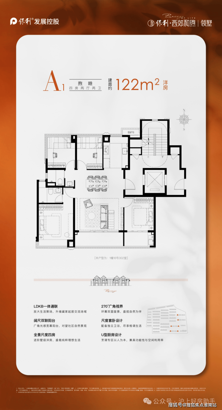 建面约122m²4房2厅2卫墅境洋房,类1梯1户设计,精装交付,南北通透。