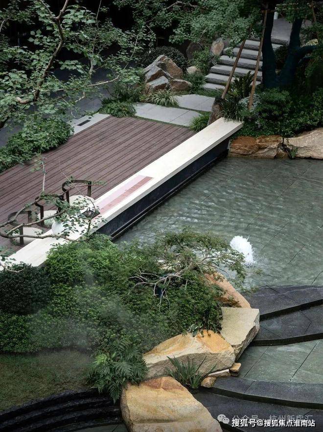 三进庭院雨打芭蕉,檐语时光。四进沉浸式下沉式会所以高山流水为幕,通过层叠水景与立体山石,复现《溪山行旅图》觅得知音的沉浸场景。