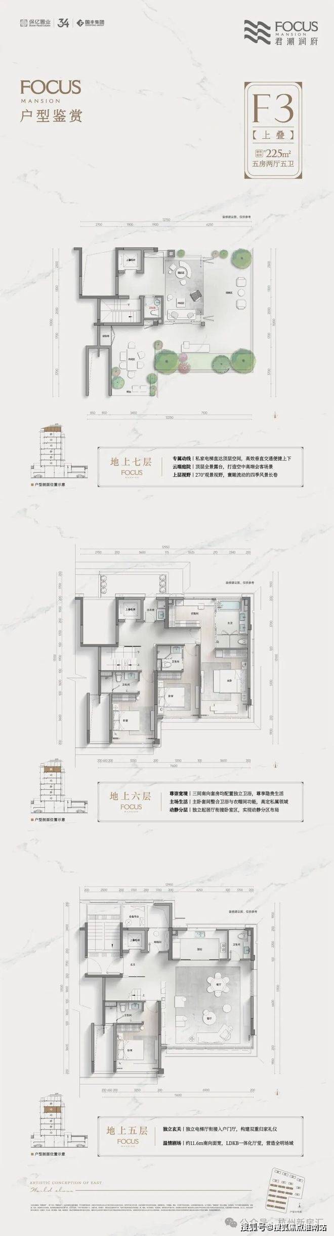 颠覆传统叠墅的设计理念,融入平权主义思维,通过约225㎡统一户型的设计,实现了上、中、下叠“同面积、同配置、同享受”。