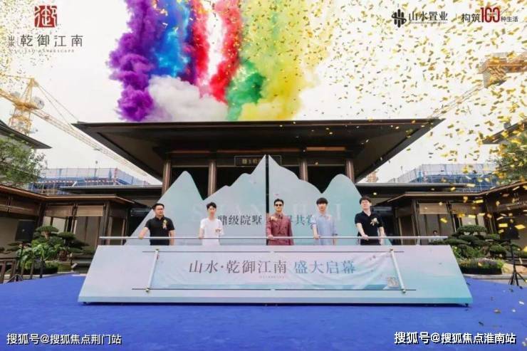 礼炮齐鸣,烟花盛放,在全场经久不息的欢呼与瞩目下,一幅巨型卷轴徐徐展开,开合门庄严启动。至此,山水·乾御江南「宋韵美学」实景示范区暨美学样板间华彩盛启,剪彩仪式圆满礼成!这标志着2025山水置业于鹿山CBD打造的封面院墅,正式耀世登场!
