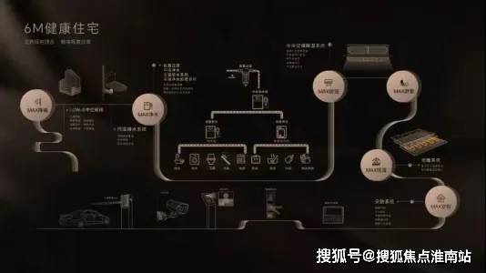 全屋配置6M健康智能住宅系统。这个智能系统系统涵盖降噪、净水、除湿、恒温、安智等多方面: