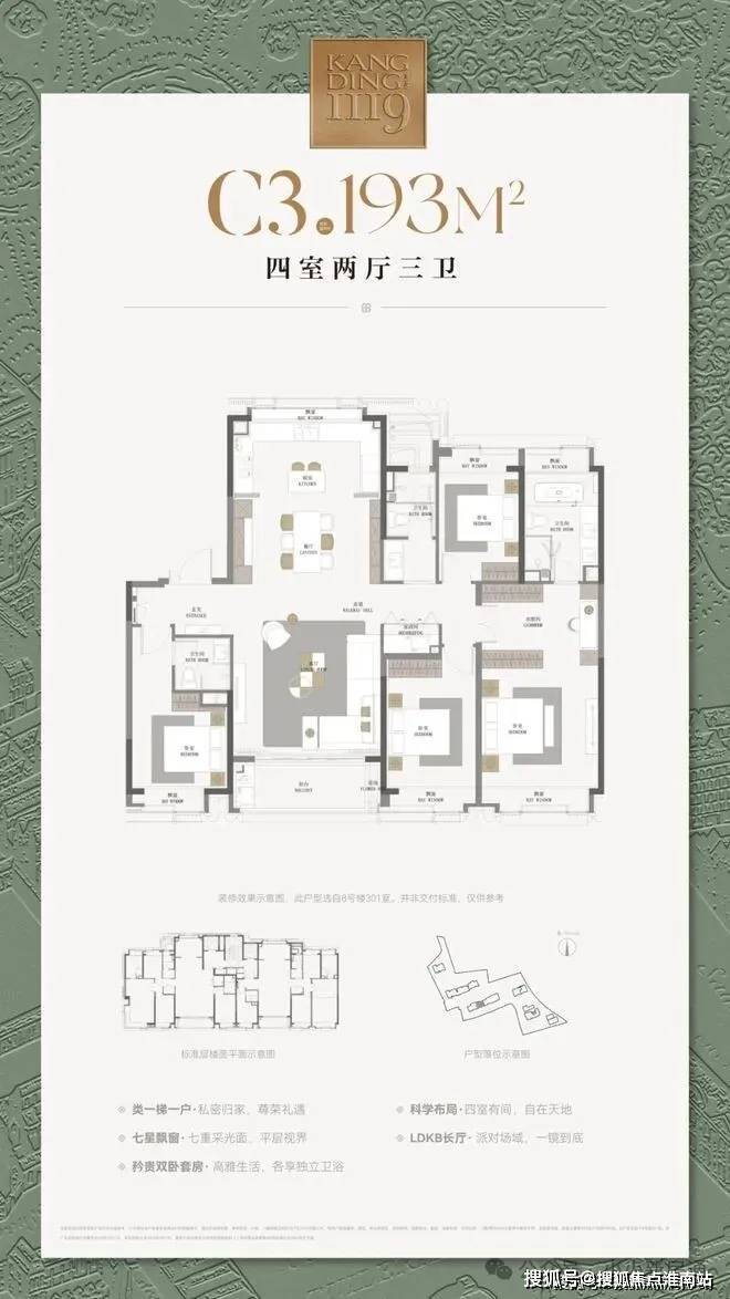 193㎡户型完全就是豪宅的大尺度!保守的说,可以跟市面上几乎所有230+㎡户型对标!
