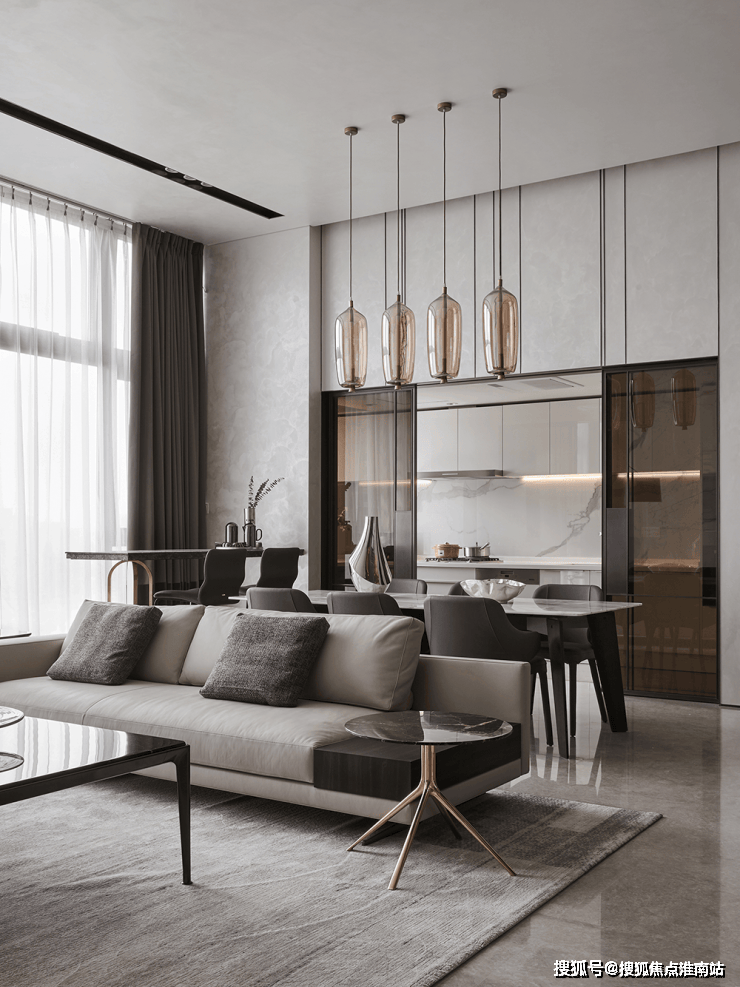 整体简约的现代主义风格令人安怡,沉稳温丽的色调下,线条利落有致,格局清晰,结构性强,空间质感不言而喻。