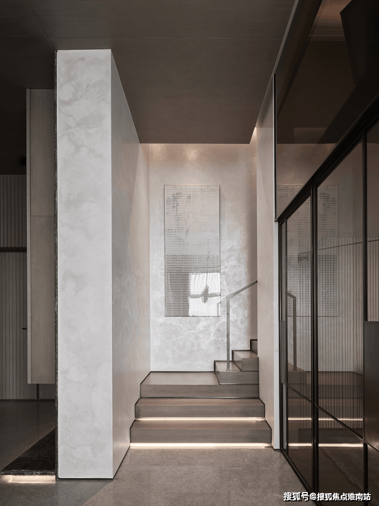客厅另一侧以都市建筑为意象,构成跃层空间。