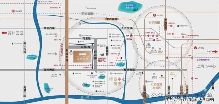 本项目距离苏州地铁11号线4号出站口展览中心站仅50余米,在花桥站与上海地铁11号线同站换乘。可以换乘1、2、3、4、8等多条地铁线路,轻松转乘到达苏州、上海各个区域。