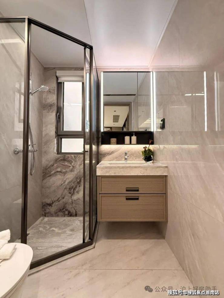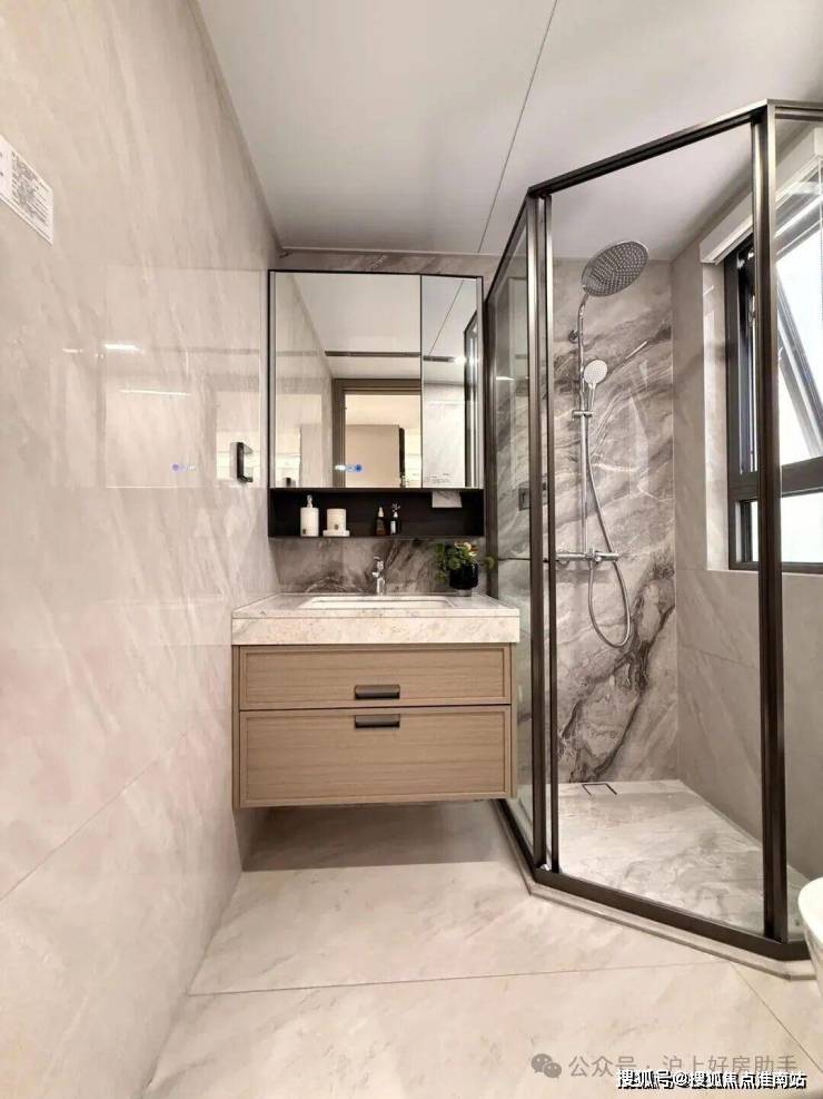 卫浴:一线品牌、精致收纳(卫生间镜柜、浴室柜)、智能生活(卫生间镜柜自带冰箱存储功能,呵护女主人的情绪价值);智能马桶,美好生活新体验)