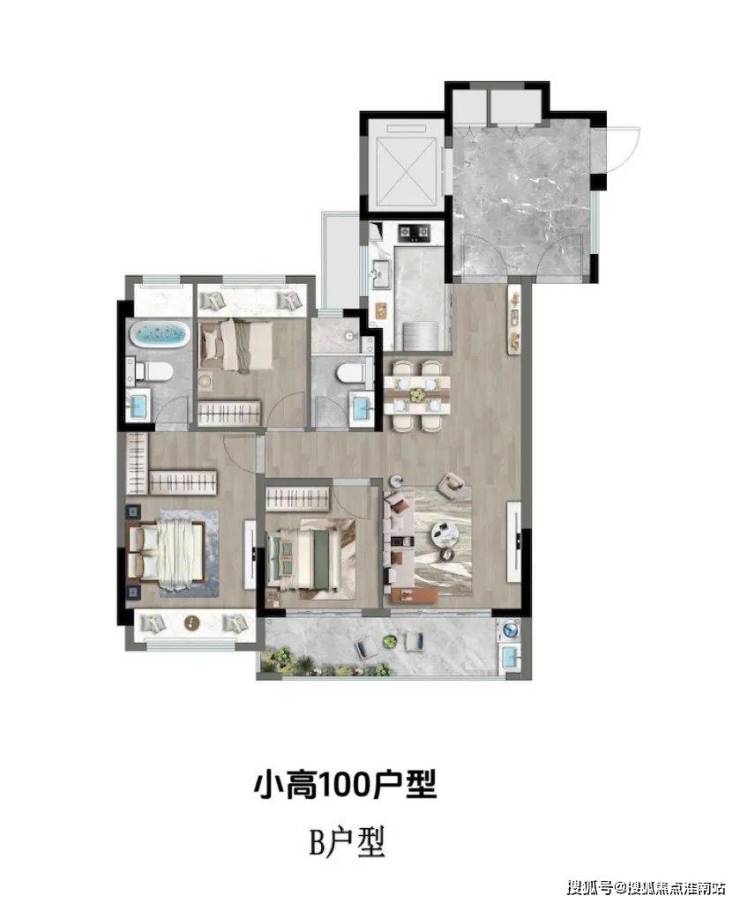 【户型】:高层91户型3房1卫、100户型3房2卫;洋房110户型三房2卫