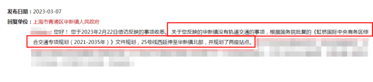 而现在这一遗憾也被弥补!上海官方在接到居民反映华新没有轨道交通,出行不便的之后作出回应: