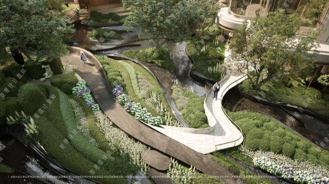 项目打造了层次丰富的立体景观,通过抬板、立体庭院、下沉式绿化与建筑第五立面的融合,项目营造出了一个充满生机与活力的自然生态社区。
