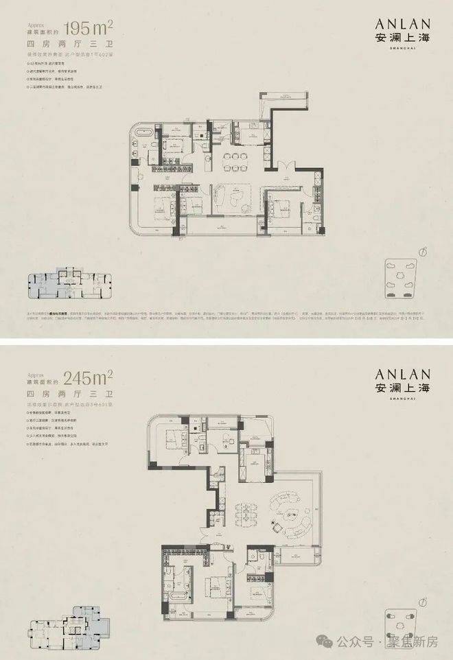 建面约195㎡户型总价2700-3400万 单价13.8-17.5万/㎡