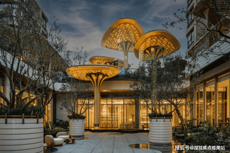 莫奈花园会所的下沉式庭院设计,由“气泡花园”、“森之庭院”、“光影连廊”、“铝板立面” 构成了全新的景观体系,通过巧妙的室内外和垂直上的空间联动进行统一的动线规划造景,营造出丰富的园林空间体验感。