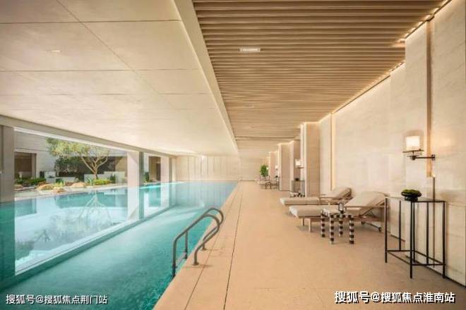 比如恒温泳池,与下沉式庭院只隔了一面大玻璃,看出去就是庭院里的水景。这样的恒温泳池已经不是豪宅的专属了,单价三四万的璟逸,也可以拥有。