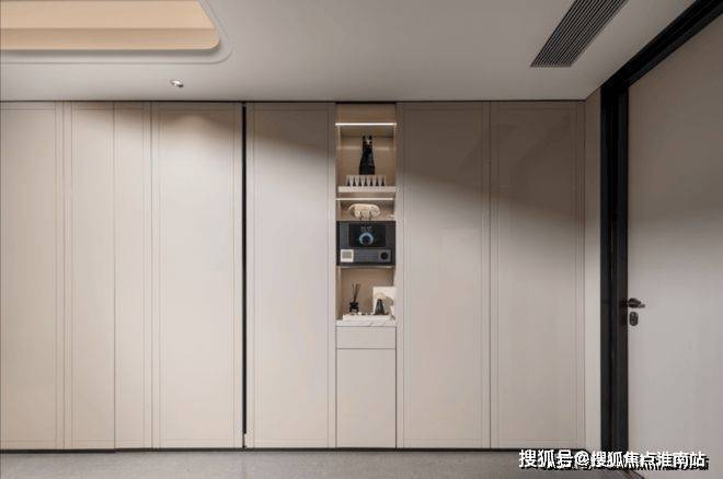 从电梯厅开始,就是酒店式定制化设计,弧形顶设计的电梯厅,门牌上设计了玉石托盘,可以放置家庭独有的摆件,注重仪式感的同时更具高定私享趣味性!