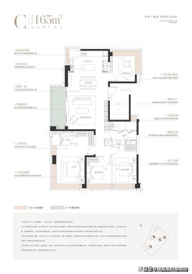 上海虹口华润外滩瑞府售楼处电话:400-965-9259(最新售楼处电话)大横厅尺度感奢阔,尊享私梯入户,隐私性满分!三间卧室朝南设计的平权户型,老人、小孩均可享受南向采光;厨房转角窗、主卧套房、北向书房均配置270度转角飘窗,景观视野相当不错!次卫四分离设计,相当人性化~