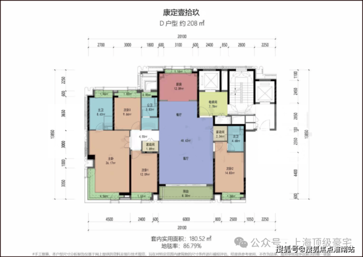 193㎡户型完全就是豪宅的大尺度!保守的说,可以跟市面上几乎所有230+㎡户型对标!