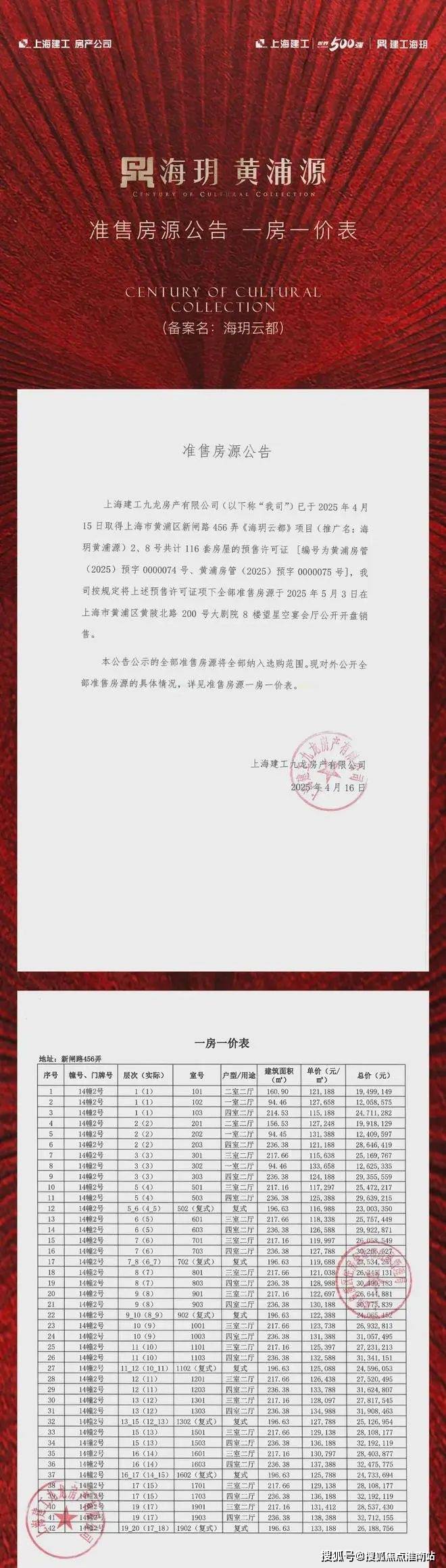 真正上海老牌市中心历史底蕴与摩登风貌交汇「海玥黄浦源」已开盘顺销中!少量建面约193-402㎡高层房源均价14.56万/㎡,总价2500万起!