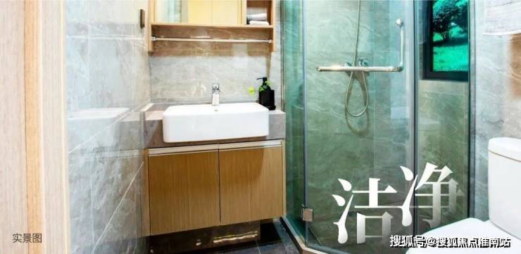 卫浴空间的细节处理同样精道,嵌入式的台下盆设计、淋浴间的挡水石设置、过门石半包柱脚等细节处理,让整个空间的打理更加容易。