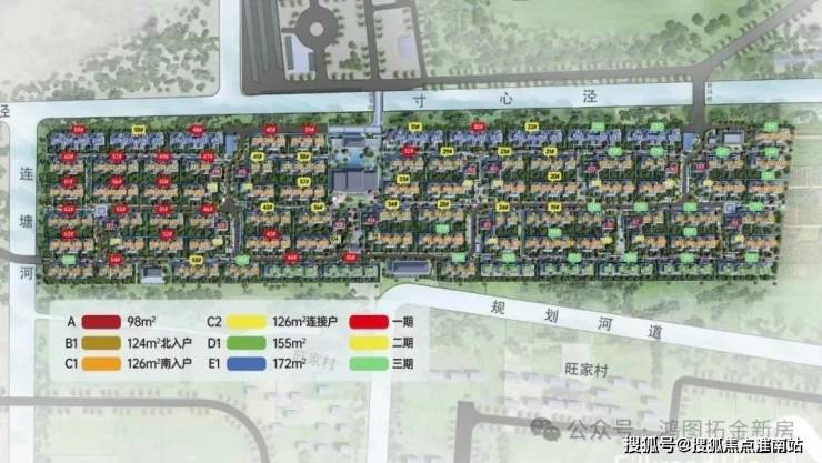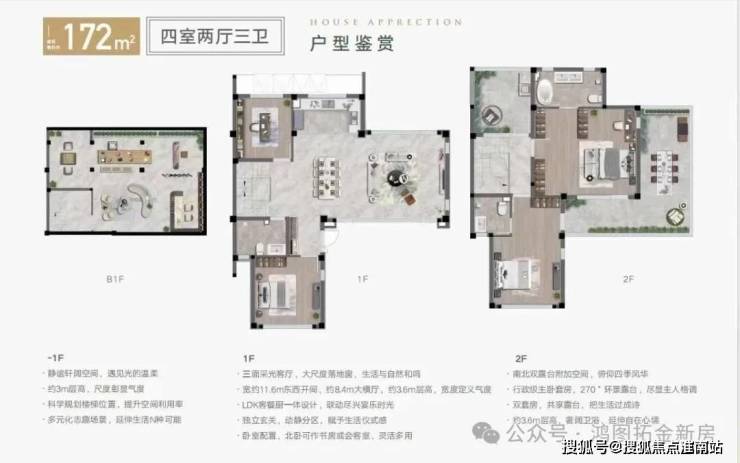 2.户型与附加空间 主力户型为98-172㎡合院,地上两层+地下一层设计,层高3.6米。每户赠送地下室(约74㎡)、露台(约26㎡)及闷顶空间(约20㎡),实际使用面积翻倍。