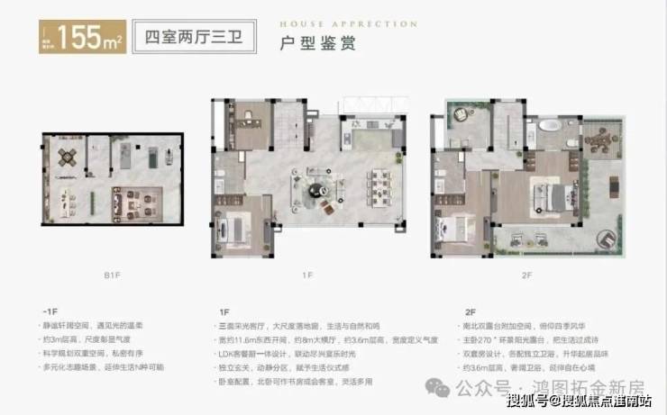 3.功能布局 一层设超宽横厅(9.2米面宽)、南向老人房;二层为主卧套房+次卧;地下层高3-5.4米,可改造为影音室、酒窖等功能区。