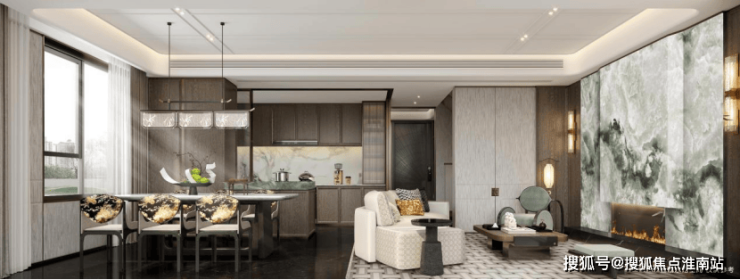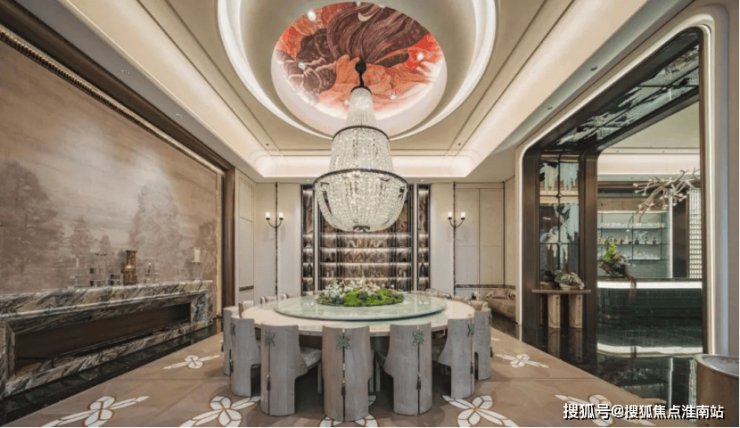 入户处玲珑玉拼花与透光云石辉映,搭配宋纹隔栅屏风,尽显东方雅韵;人性化设计融入升降拉篮等现代巧思;全屋智能系统联动博世厨电、唯宝卫浴等国际奢品,以当代科技诠释宋代极奢生活美学。