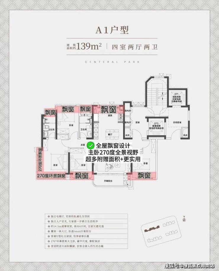亮点一:经典四开间朝南+大横厅设计,超绝采光户型!