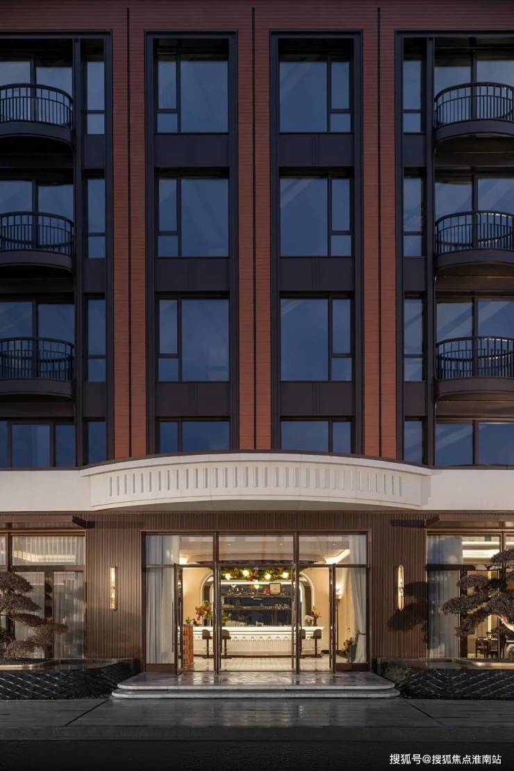 作为未来主入口的水畔之汀,则以海派弧形收边延续建筑风格,幻影蓝流水墙、普拉达绿景墙与奢金影灯形成撞色视觉焦点,中央更移植了百年桩景红果冬青与进口红枫,一步一景间皆是仪式感。