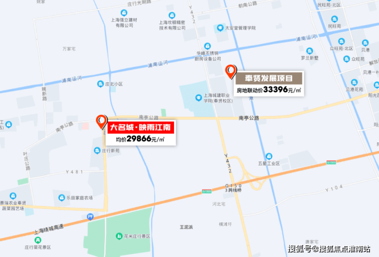 老闵行价格已达到5.9万/㎡,奉贤新城价格也在4万/㎡+,大名城·映雨江南均价29866元/㎡,价格差非常明显。