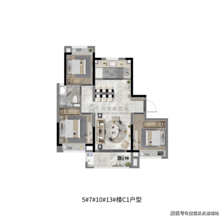 这个户型可以说是一步到位的改善户型了,三代同堂+二胎家庭同样可以拥有不错的居住体验,如果预算够得着,非常值得购买!
