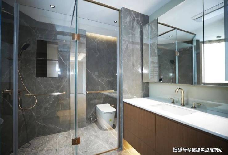 The bathroom expresses the cleanliness of the space through bright light, and the white marble sets off the cleanness and purity of the space, showing a sense of high quality.