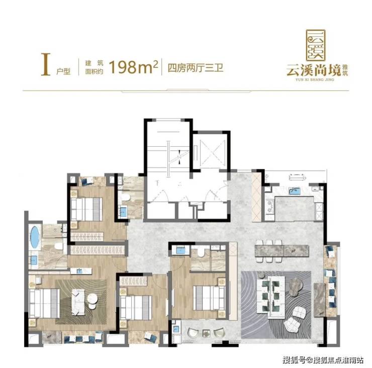 云溪尚境售楼处电话☎:400-998-9694✔✔ 208平米4房2厅三卫户型----近20米超大面宽,菁英的生活排面