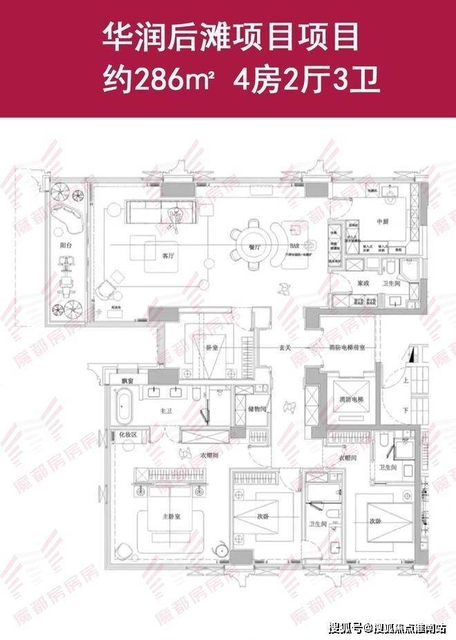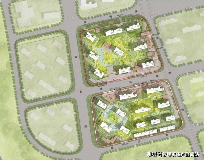项目地面无车位,全人车分流,主要出入口位于南侧德州路,车行出入口分别位于德州路、济明路、德恒路;所有住宅楼栋首层全架空,设置有大面积的下沉式庭院、地下会所以及风雨连廊!