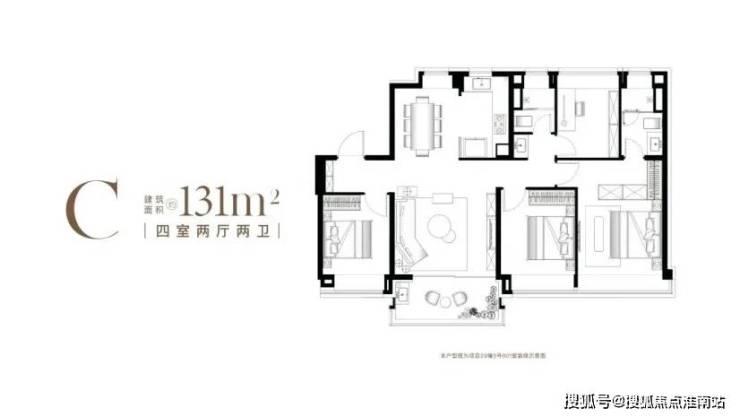 建面约131㎡改善大4房,奢阔尺度犒赏全家!该户型做了惊人的四开间朝南,整个房间采光性能优异!重点看,该户型还是南北通透的竖厅设计,客餐厅、厨房、阳台融为一体,整个公区的视野无比开阔!公卫干湿分离,阳台三面采光,细节处理到位!