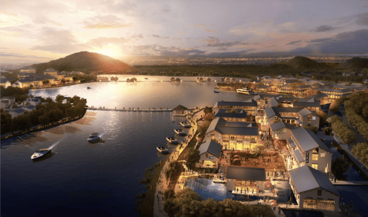 杭州是南宋故都,本身对园林是有着天生的‘偏爱’,我们希望小镇园林是宋代美学的当代呈现。”仙女湖小镇内部,被赋予了江南古典园林的“巷、院、里、弄、台”等元素,在大师笔下,演绎为一种“现代版山水园林生活方式”,更多融入金属、铝材、玻璃等当代材质,焕新宋代气韵。