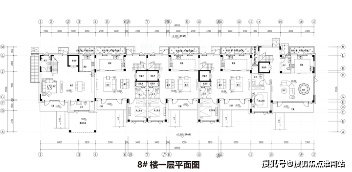 8#一层,包括中间户、东西边户3种户型。中间户南向面宽约9.2米,南向卧室与公区形成围合效果;西边户南向面宽约9.75米,横厅格局,一层没有设计卧室;东边户面宽最大约11.2米,大横厅+卧室+双卫,尺度更开阔。