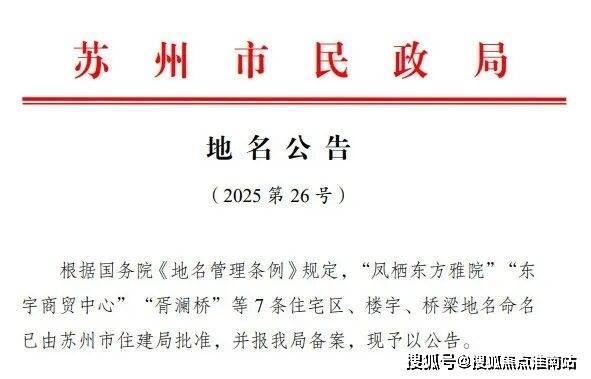 近日,苏州市民政局公告苏地2024-WG-Z14号地块案名:望湖江南院。